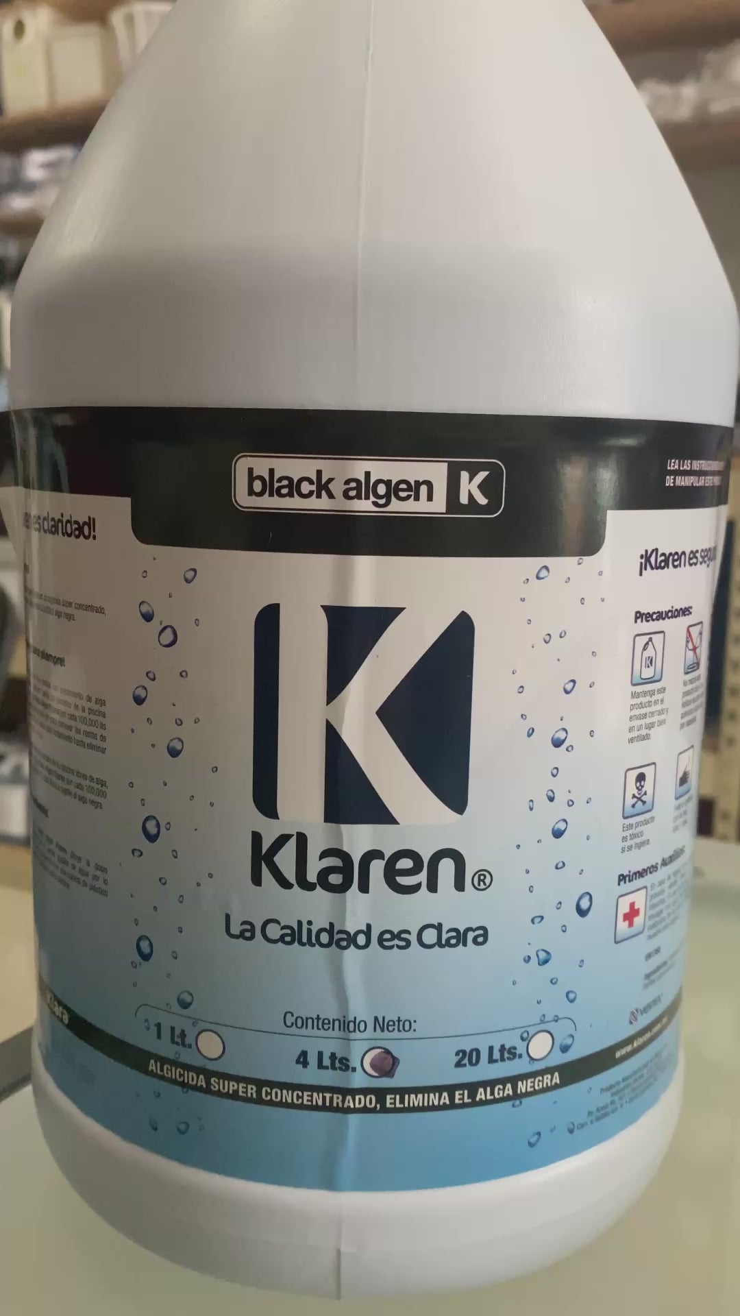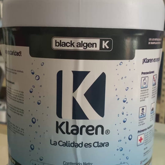 El Black Algen Klaren es un algicida súper concentrado, utilizado para eliminar y prevenir el crecimiento de la difícil alga negra. También previene que vuelven a aparecer cuando se utiliza en un programa regular de mantenimiento. Le da al agua de la piscina una condición brillante.