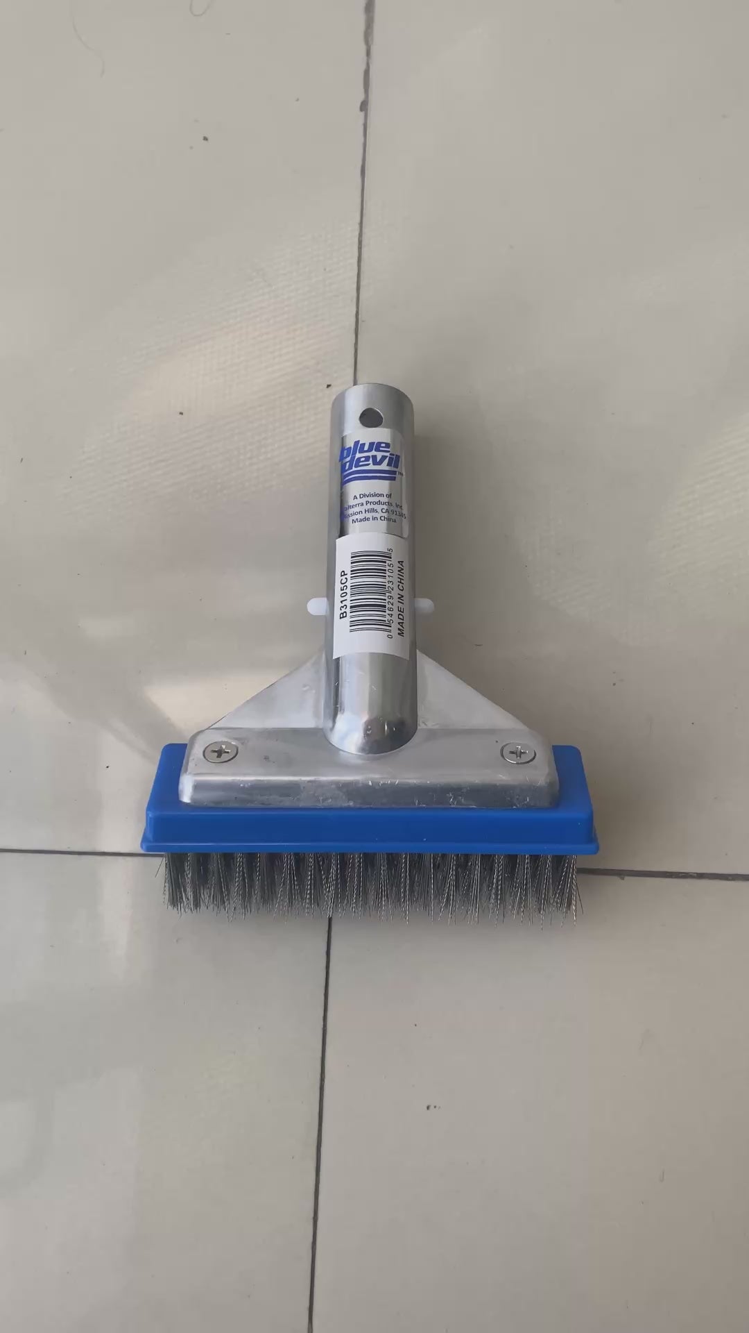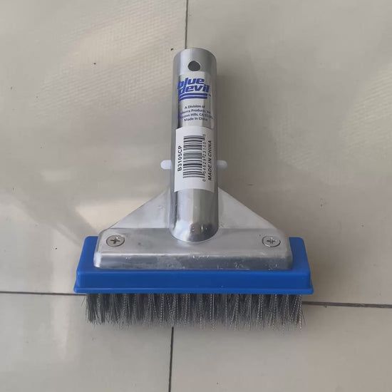 CEPILLO DE 5" CON CERDAS DE ACERO INOXIDABLE Y CON MANGO DE ACERO INOXIDABLE MARCA BLUE DEVIL PARA LIMPIEZA DE PISCINAS Y ALBERCAS