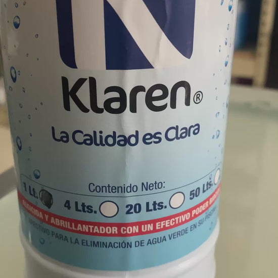 ABRILLANTADOR CLARIFICADOR VIA FILTRO, ALGICIDA DE AMPLIO ESPECTRO Y SECUESTRANTE DE METALES MAX CLEAR PLUS KLAREN 1 LITRO