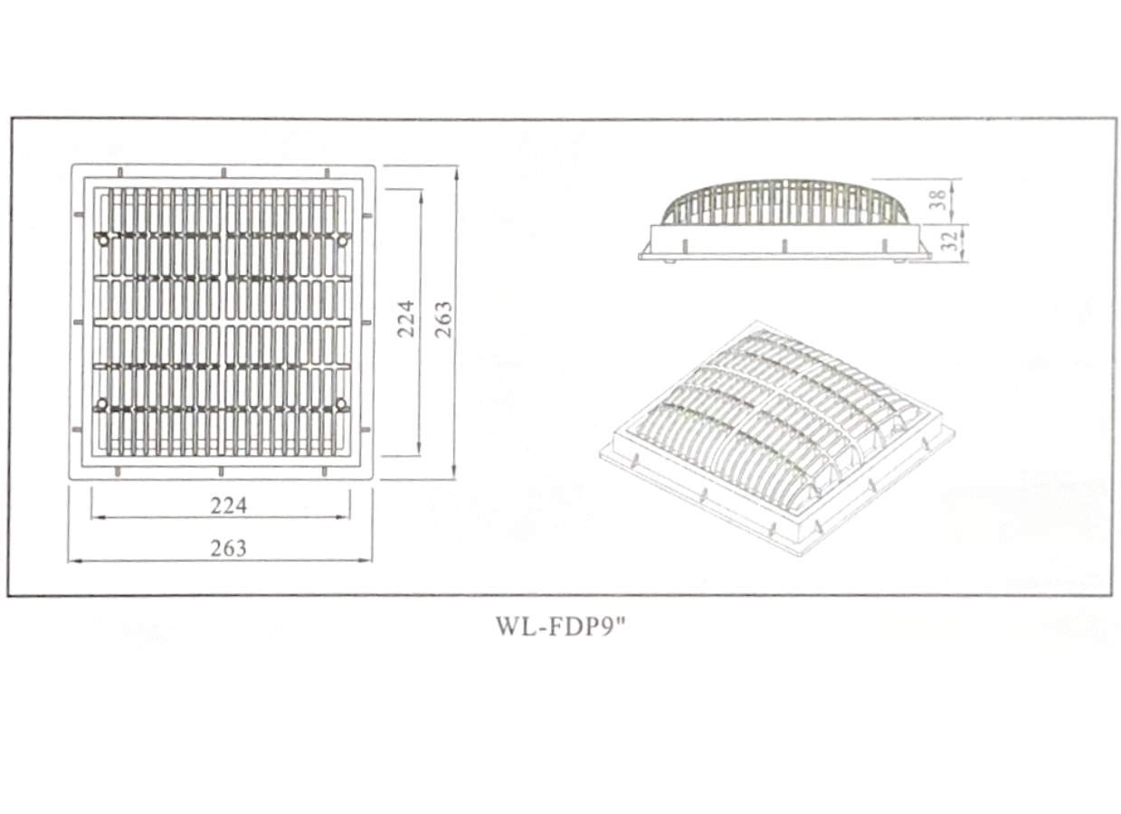 - Tapa para cuadrada de 9" x 9" para dren de fondo.