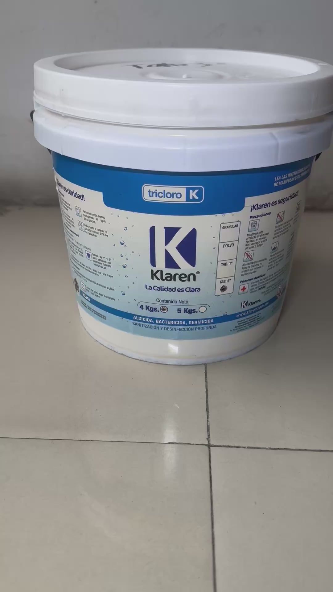 El Tricloro Klaren es un producto clorado estabilizado de alta concentración utilizado para la desinfección total del agua de su piscina o spa.