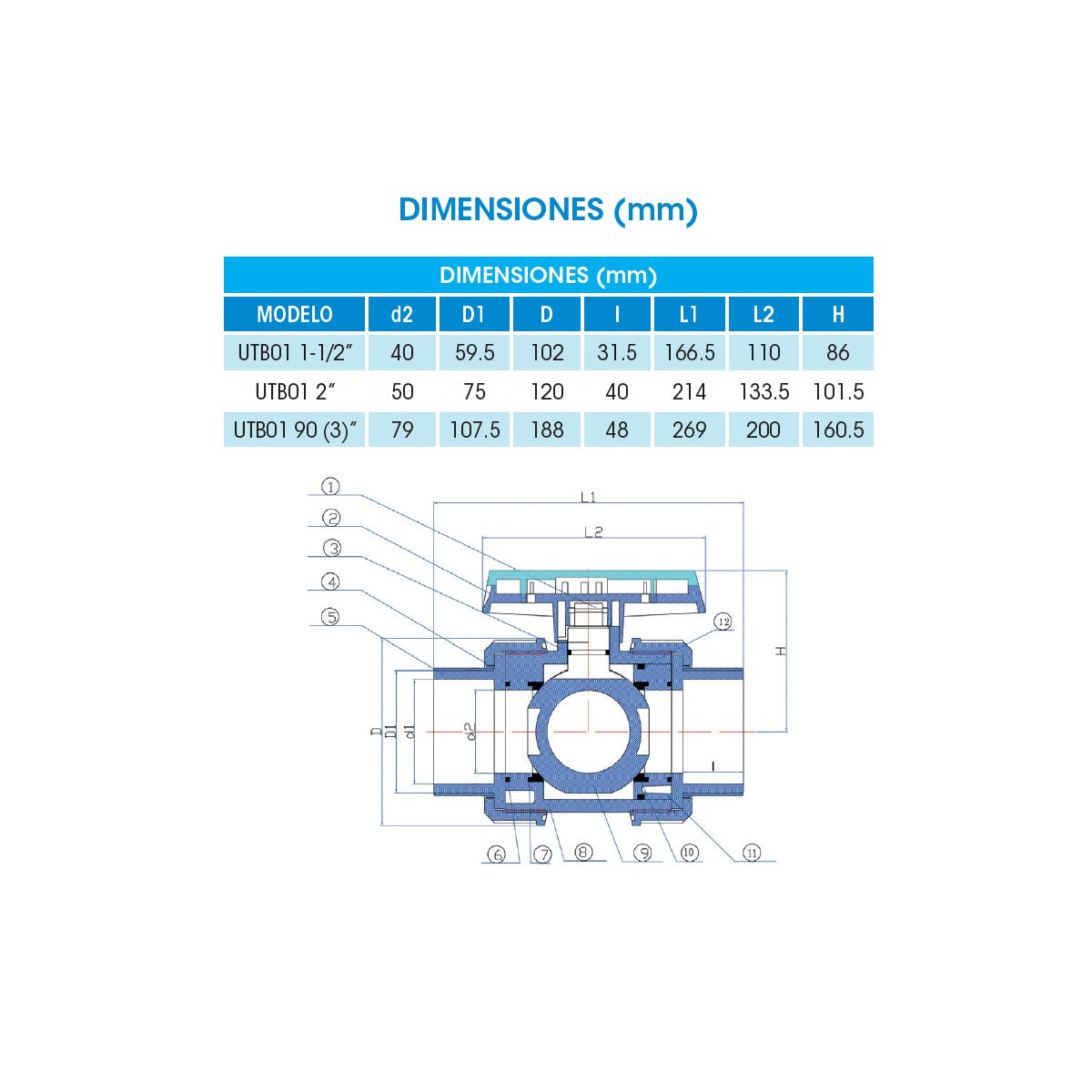 VALVULA BOLA DE 1.5" DOBLE TUERCA UNION MARCA INTERWATER